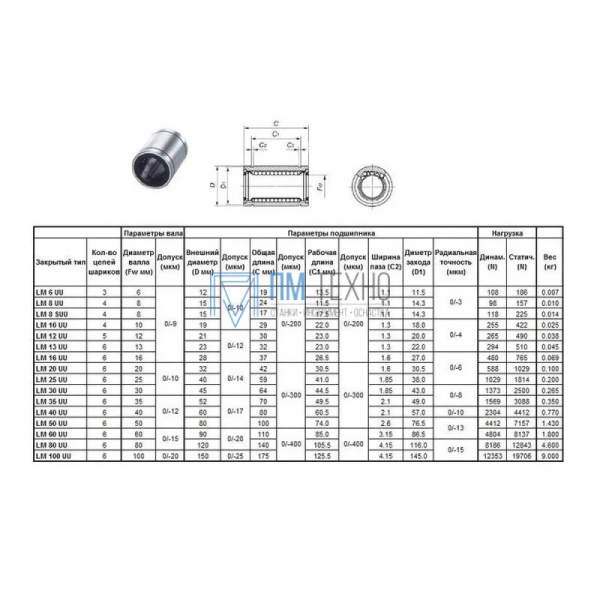 Подшипник линейный LM 13 UU, 13 х 23 х 32мм (закрытый тип) "CNIC"