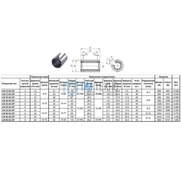 Подшипник линейный LM 13 UU OP, 13 х 23 х 32мм (открытый тип) "CNIC"