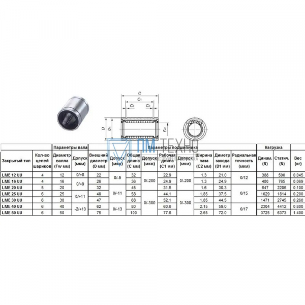 Подшипник линейный LMЕ 20 UU OP, 20 х 32 х 45мм (открытый тип) "CNIC"