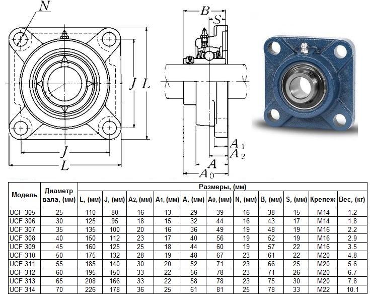 Подшипниковый Узел UCF307 (подшипник UC307 во фланцевом квадратном корпусе) "CNIC"